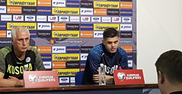 Përzgjedhësi i Kosovës, Bernard Challandes dhe sulmuesi Milot Rashica në konferencën për media në Sofje para stërvitjes së fundit për ndeshjen kundër Bullgarisë, kanë paralajmëruar se në ndeshjen e nesërme synojnë tri pikët.
