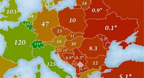 Jakub Marian ka treguar nëpërmjet një harte pasurinë mesatare në Evropë.