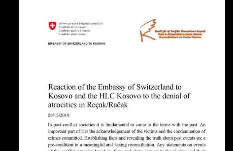 “Ambasada e Zvicrës i dënon pa ekuivoke deklaratat e Presidentit serb Vuçiq, me të cilat e mohonte masakrën e Reçakut. Të tjerët i kanë dënuar plogësht, sa me thanë”, ka thënë ai.