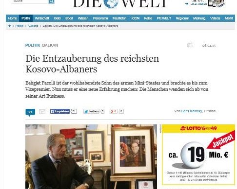 Gazeta gjermane “Die Welt” ka botuar një shkrim ku e portretizon Behgjet Pacollin, ish presidentin e kontestuar dhe ish kreministrin e Kosovës. albinfo.ch përcjell këtë shkrim të përkthyer në shqipe.