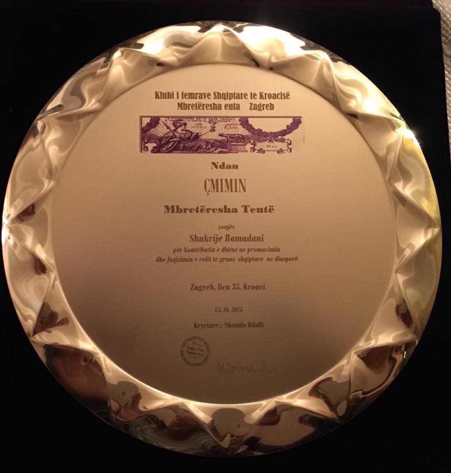 Në 10 vjetorin e formimit të shoqatës Teuta në Zagreb është mbajtur dje një aktivitet festiv. Me këtë rast, udhëheqësja e kësaj shoqate, regjisorja e njohur shqiptare nga Kroacia, Shenida Bilalli ia ka ndarë shpërblimin e parë “Mbretëresha Teuta” zonjës Shukrije Ramadani, drejtoreshë e Qendrës Kulturore të Kosovës në Cyrih.