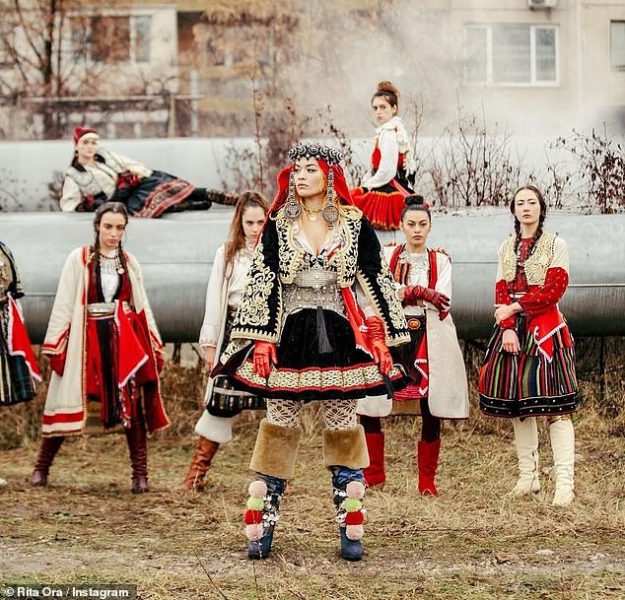 Ajo gjithashtu kishte veshur një këmishë të bardhë me geta të përshtatshme së bashku me një kokë ekstravagante kuq e zi. Rita kishte veshur edhe çizme blu të errëta dhe doreza të kuqe të ndezura, ndërsa pozonte së bashku me disa gra të tjera me veshje tradicionale, vazhdon tutje DailyMail.
