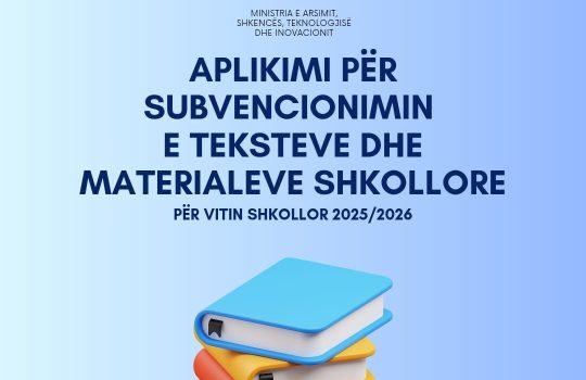 - Kosovë: Fillon aplikimi për subvencionimin e teksteve dhe materialeve shkollore për vitin 2025/2026Ministria e Arsimit, Shkencës, Teknologjisë dhe Inovacionit në Kosovë ka hapur...