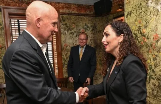 Miss Amerika 2025, Samantha Shkreli Sarelli, bei einer Veranstaltung mit Präsidentin Vjosa Osmani