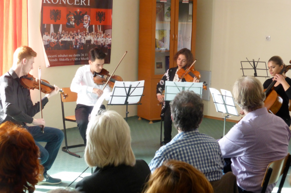 Vor sieben Jahren begannen Dorothea und Georg Fankhauser aus Basel die Musikschule in Gjakova zu unterstützen. Seither konnte diese Musikschule wachsen und ihr Niveau bedeutend steigern. Immer wieder treten die Musikerschüler und –schülerinnen in Konzerten auf und stellen ihr Können unter Beweis. Nun weitet Dorothea Fankhauser ihre Unterstützung auf zwei weitere Musikschulen aus, in den Städtchen Rahovec und Peja. Langsam entsteht ein Netz musikalischer Zusammenarbeit in Kosova. Gemeinsam ehrten am letzten Samstag Musizierende aus Gjakova und Rahovec die Donatorin.