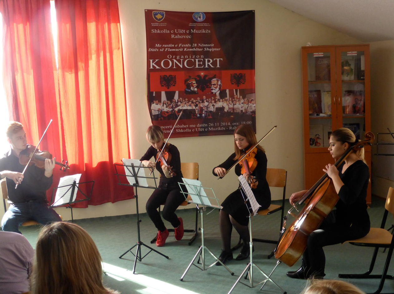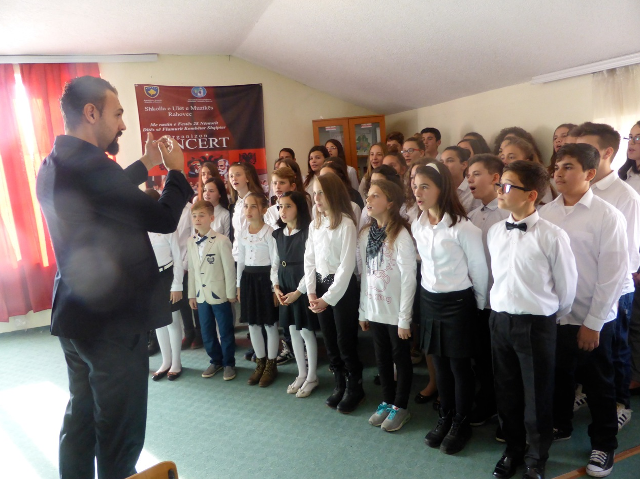Im Konzert in Rahovec traten Kinder, Jugendliche und junge Erwachsene einzeln und in Kammermusikformationen auf, von den kleinen Anfängern bis zu dem Musikstudentinnen und –studenten, die sich nach Abschluss der Musikschule Gjakova in Pristina auf eine Berufskarriere vorbereiten. Unter der Leitung von Astrit Pallaska sangen zum Schluss gegen vierzig Kinder von Rahovec und Gjakova gemeinsam im Chor, und zeigten, was der erfahrene Chor- und Orchesterleiter innerhalb von wenigen Musikstunden mit den kleinen Sängerinnen und Sängern von Rahovec erreichte, unterstützt vom bereits geübteren Chor von Gjakova. Die Freude und Begeisterung der Musizierenden übertrug sich auf das Publikum. Die Erziehungsdirektorin der Gemeinde, Vjollca Vuçiterna, und der Leiter der Musikschule von Rahovec, Nasër Dula, dankten der Donatorin und allen Beteiligten für ihren grossen Einsatz.