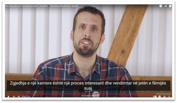 Wichtig ist, dass die Eltern, spätestens ab der Oberstufe die angebotenen Lernmedien für die erste Berufswahl kennen und auch nutzen, damit die Berufswahl ihres Kindes zum erfolgreichen Berufswahlprojekt wird. Seit über 40 Jahren begleiten wir Jugendliche und ihre Eltern im Berufswahlprozess. Mit dem ersten digitalen Berufswahl-Lernmedium www.profolio.ch werden die Jugendlichen in motivierenden Challenges da abgeholt wo sie gerade im Berufswahlprozess stehen. Auch die Eltern werden in den Berufswahlprozess mit dem Schweizer Bildungssystem eingeführt und dies in über 12 Sprachen inklusive Albanisch. Zudem haben wir ein Youtube-Video speziell für Eltern erstellt, welches mehrsprachig untertitelt ist: https://www.youtube.com/watch?v=DoRJ2UoH9H8