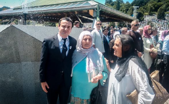 “Albin Kurti nahm an den Gedenkveranstaltungen teil, besuchte die Vereine der Familienangehörigen der Opfer und legte einen Blumenkranz am Mahnmal als Zeichen des Respekts für die Opfer. Er solidarisierte sich mit den Opfern und mit dem bosnischen Volk”, heisst es in einer Medienmitteilung der Bewegung Vetëvendosje!