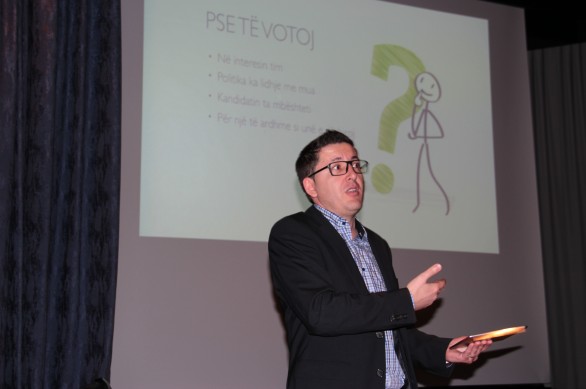 Er versucht mit seiner Wahlkampfequipe, die Albaner dazu zu bewegen, ihr Wahlrecht auszuüben.