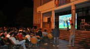 Alle Zuschauer beim Public Viewing in Gjilan, einschliesslich Bürgermeister Lutfi Haziri,...