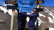 Auf dem Gilpfel von Kilimanjaro stellten die kosovarischen Alpinisten angeführt von...