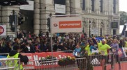 Mimoza Kusari-Lila mit kosovarischer Falgge am Wiener Marathonlauf