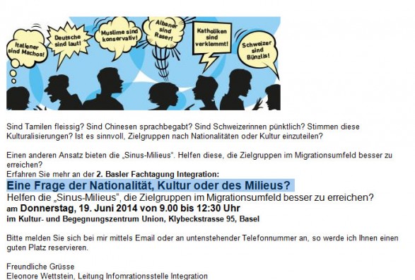 An der 2. Basler Fachtagung  Integration wird mit dem Thema „Eine Frage der Nationalität, Kultur oder des Milieus“ dieses Thema näher beleuchtet.