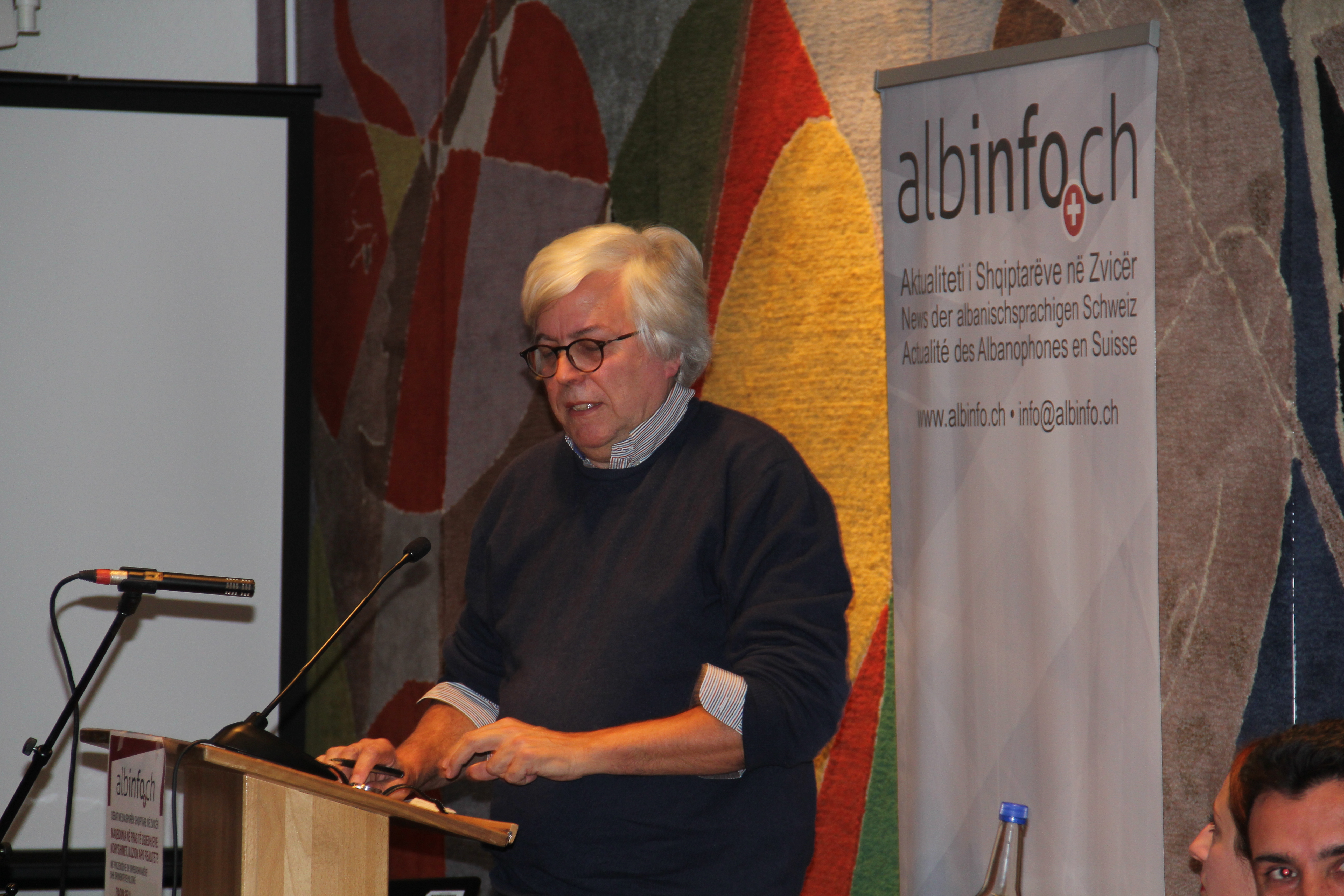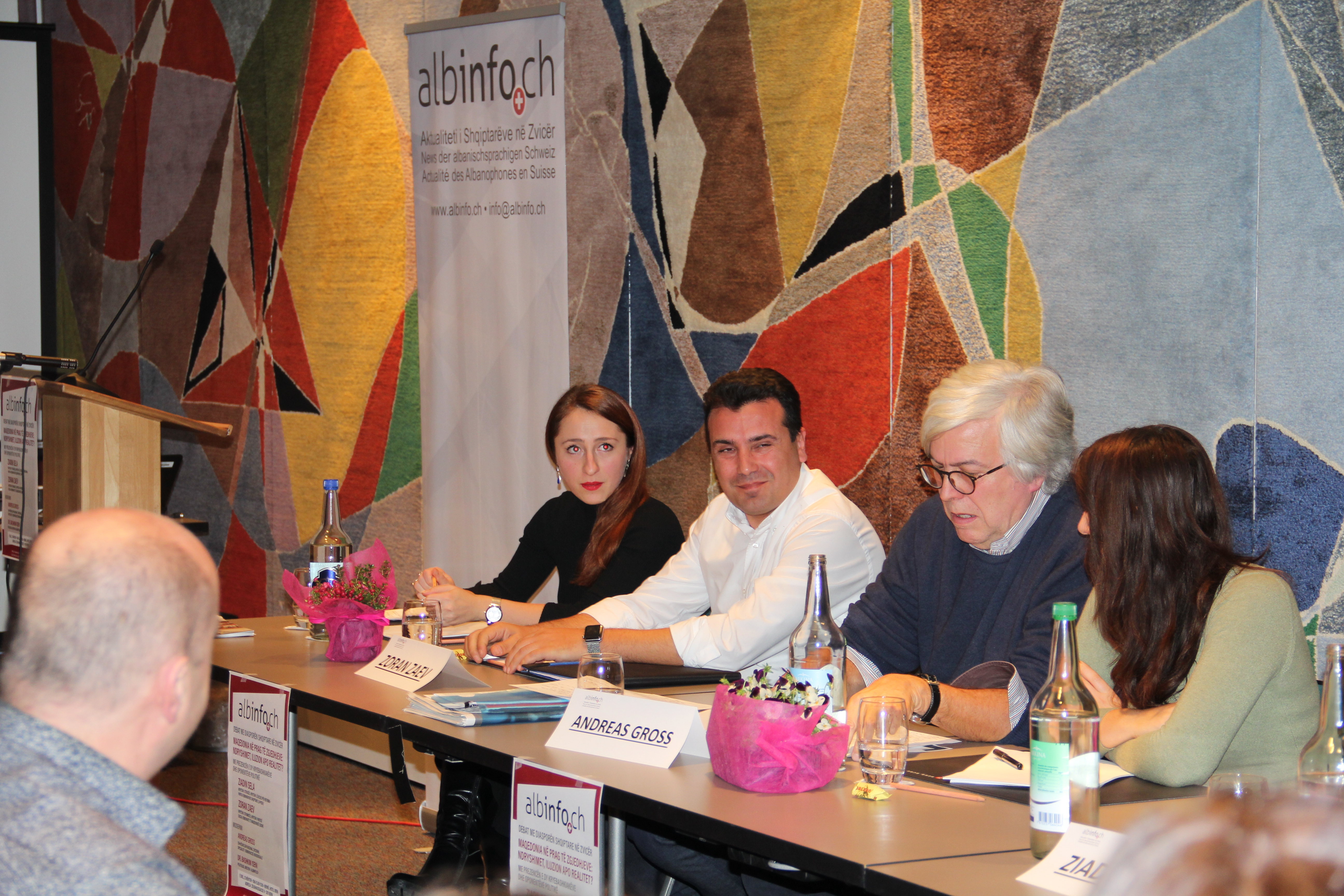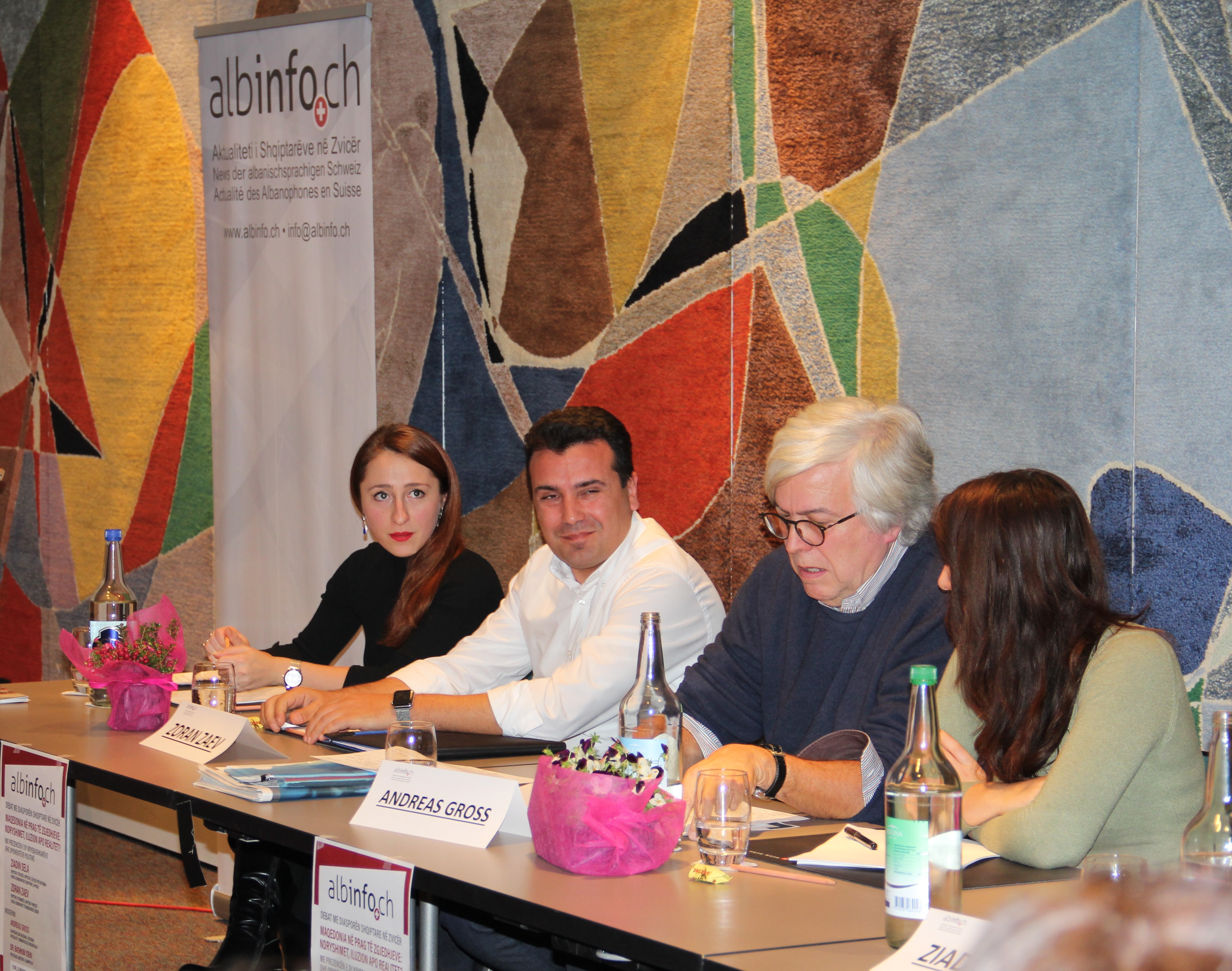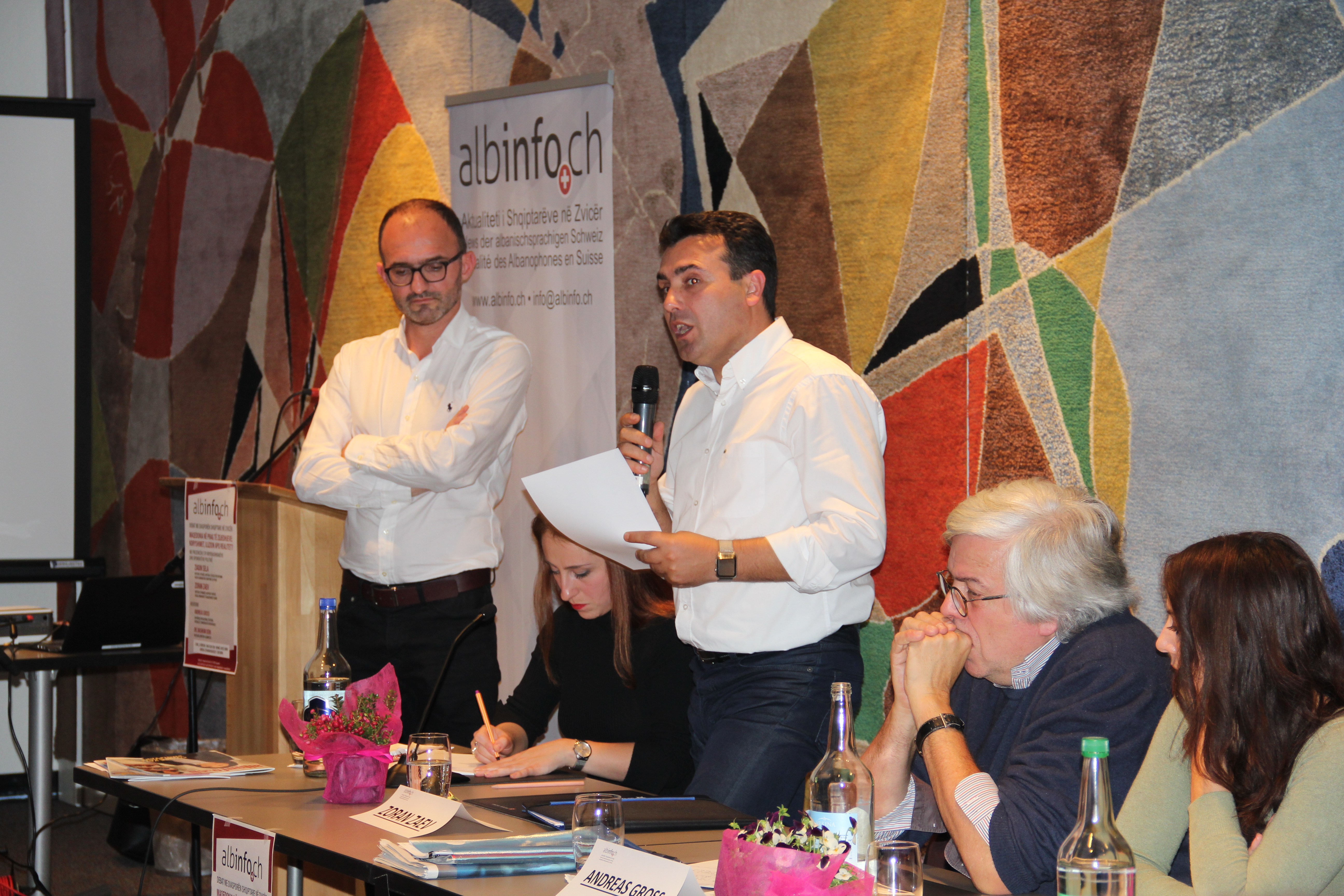 Der Präsident des Vereins albinfo.ch, bekannte Schweizer Politiker, ehemalige Nationalrat und Europaratabgeordnete Andreas Gross wurde am Podium als Freund und ausgezeichneter Kenner Makedoniens und der albanischen Frage vorgestellt.