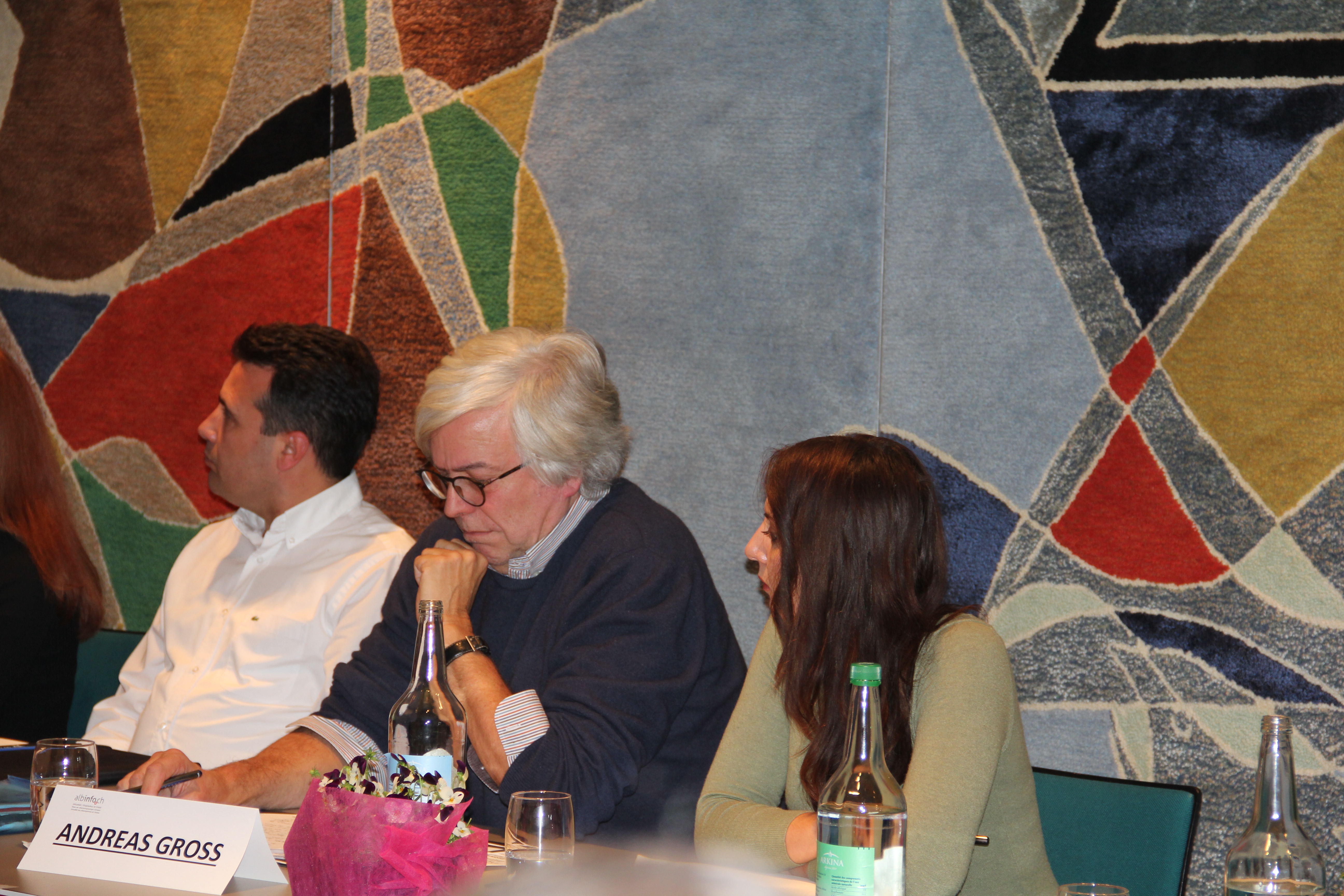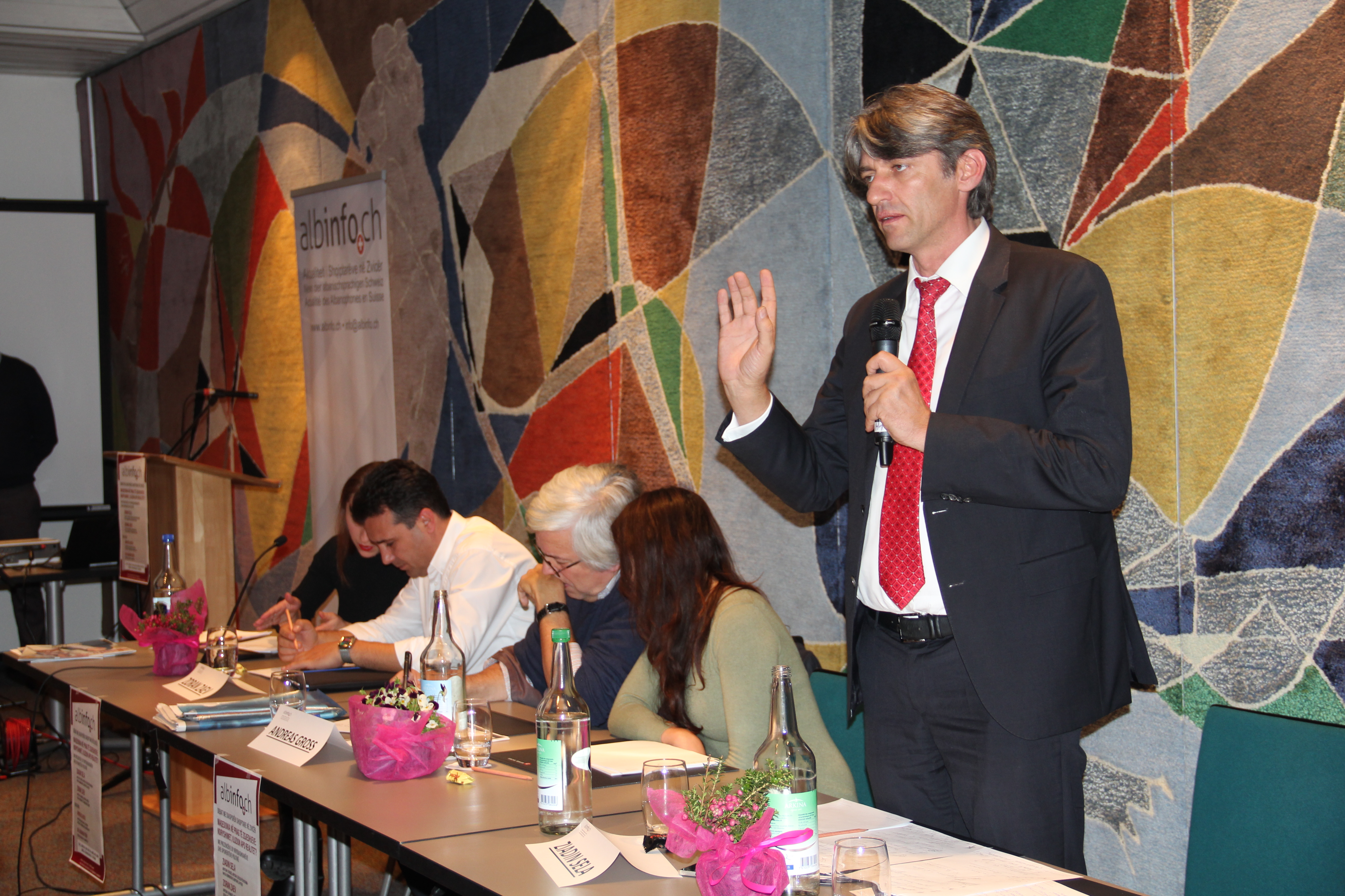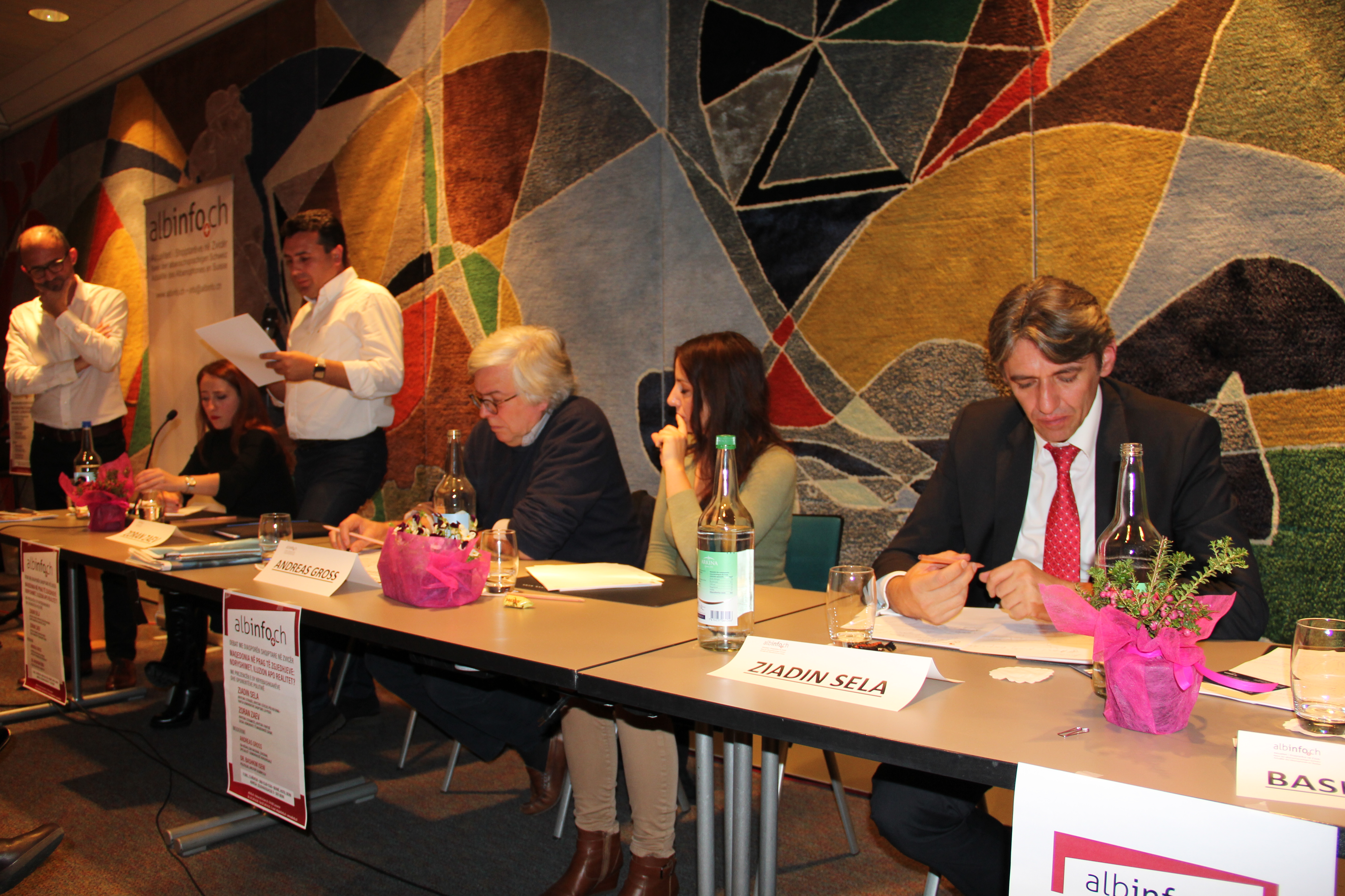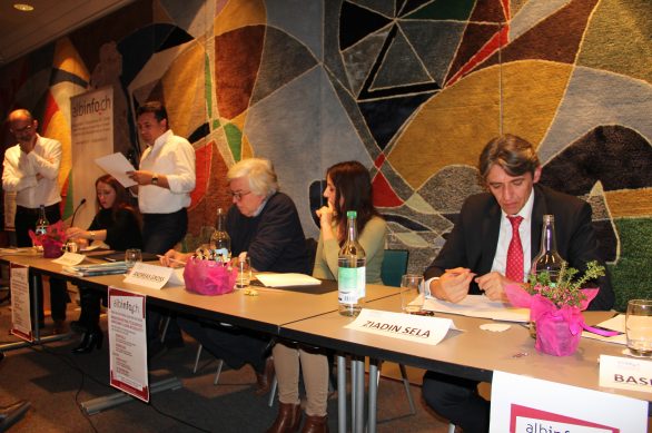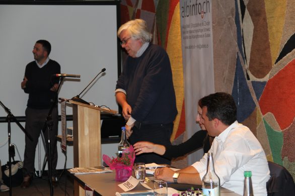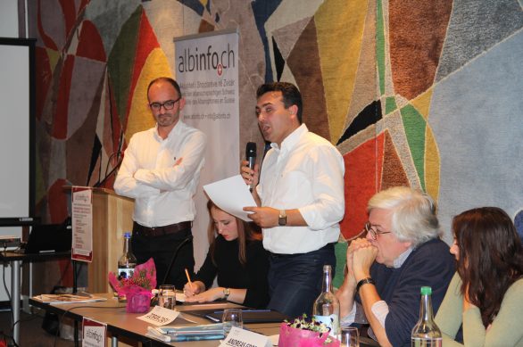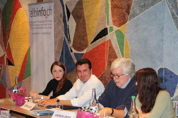 Der Präsident des Vereins albinfo.ch, bekannte Schweizer Politiker, ehemalige Nationalrat und Europaratabgeordnete Andreas Gross wurde am Podium als Freund und ausgezeichneter Kenner Makedoniens und der albanischen Frage vorgestellt.