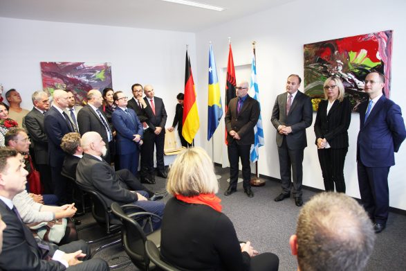 Beide Aussenminister, Enver Hoxhaj aus Prishtina und Ditmir Bushati aus Tirana, weihten das neue Objekt des gemeinsamen Konsulats ein. Eingeladen war auch die bayrische Staatsministerin für Europäische Angelegenheiten Beate Merk, sowie Rifat Jashari, Vertreter der Familie Jashari aus Kosova.