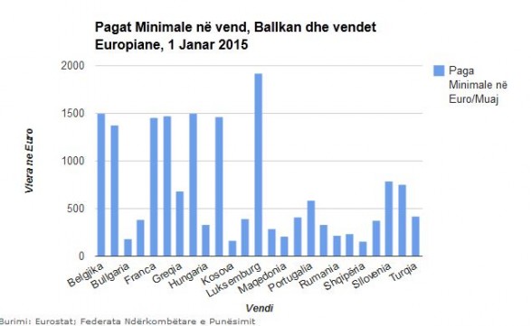 Laut Angaben von Open Data Albania haben Kosova und Albanien keinen Mindestlohn über 200 Euro.