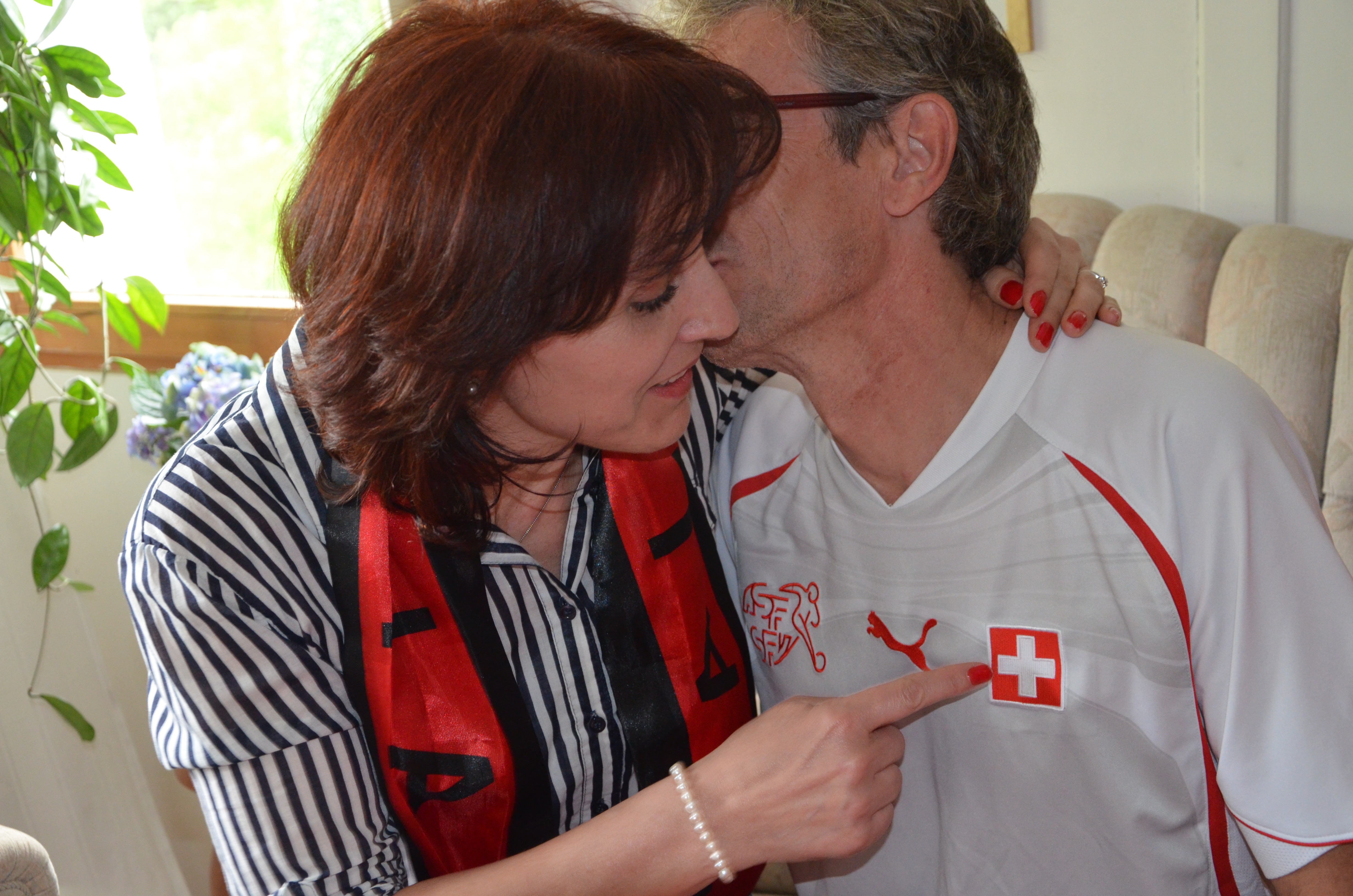 Es ist also eine nicht definierte Liebe – davor kann uns nur ein Schweizer Grundwert schützen – die Neutralität. Aber ist dies bei einem Fussballspiel möglich? Wir zweifeln daran, sagt eine Schweizer Familie, bei der nur der Vater für die Schweiz ist. Schweiz gegen Albanien? Nein, bei den Schweizern heisst dieses Spiel Albanien: Albanien eins gegen Albanien zwei. Ich unterstütze die Albaner der Schweiz, denn ich weiss, dass ich mich auf meine Freunde verlassen kann. Ich hoffe, die Schweit gewinnz 2:1, sagt Thomas Schmid. Doch wenn die Schweiz verlieren würde, würde es einen Schrei in den Medien geben. Seht her, wir können uns nicht auf die albanischstämmigen Spielen verlassen. Man kann ihnen alles geben, doch sie werden albanisch bleiben, sie werden nie ein Teil von uns werden, sagt Thomas – wissend, dass es er hier etwas übertreibt.