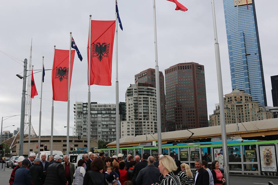 Am Federation Square hissten Murati und Kiçmari die albanische Flagge, eine Tradition im Zentrum von Melbourne, heisst es in einer Medienmitteilung, zitiert albinfo.ch.