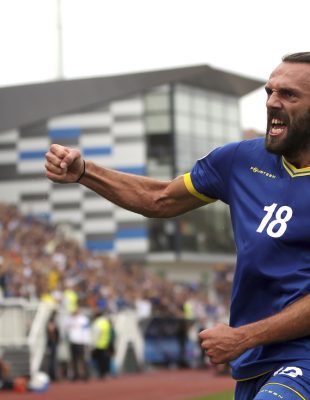 Harry Kane vom FC Bayern, Kylian Mbappé von Real Madrid und Erling Haaland von Manchester City haben mehr Tore erzielt als der Stürmer von Mallorca und des Kosovo, Vedat Muriqi.