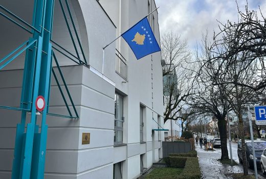 Tragödie in Crans Montana die Flagge auf Halbmast an der Botschaft des Kosovo in Bern