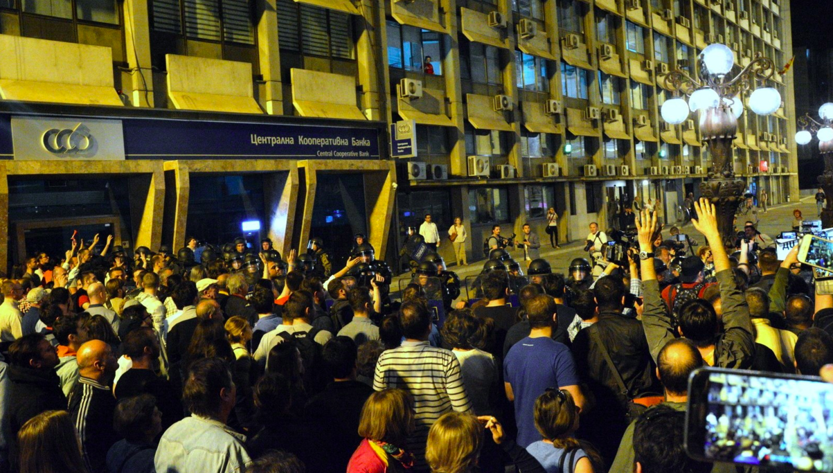 Die Entscheidung von Staatspräsident Ivanov, politische Funktionäre von der straafrechtlichen Verantwortung zu amnisiteren, hat zu Protesten geführt, die nun eskaliert sind. Demonstranten haben die Fenster des Büros vom Staatschef Ivanov, vom Justizministerium, vom Parlament und vom Regierungssitz zerschlagen. Die Polizei konnte sie nicht stoppen.