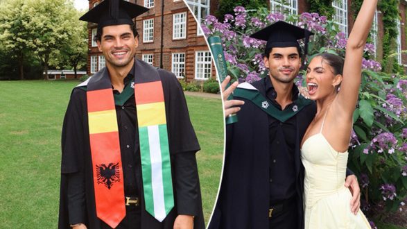 Rinor Kastrati schließt sein Studium in London ab und hisst stolz die albanische Flagge