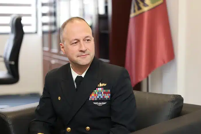 Alban Dervishi, der Albaner, der das US-Kriegsschiff USS Pearl Harbor kommandiert, kommt in den Kosovo