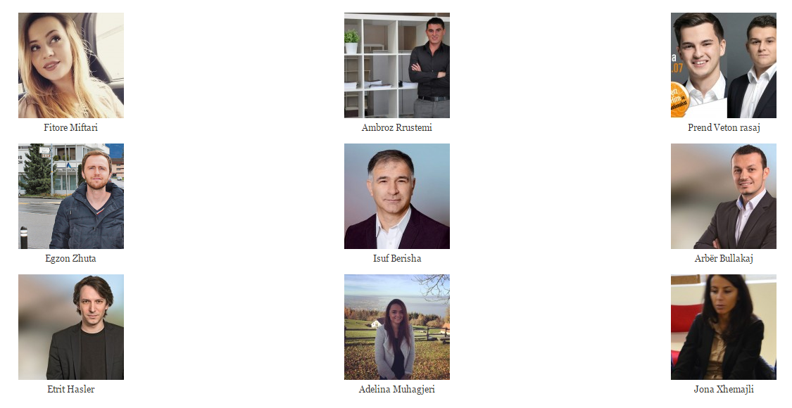 Isuf Sherifi, Arbër Bullakaj, Etrit Hasler, Adelina Muhagjeri und Jona Xhemajli kandidierten für die SP, Ambroz Rrustemi für die SVP.