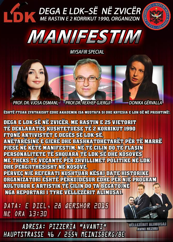 Dega e LDK-së në Zvicër, me rastin e 25 Vjetorit të Deklaratës Kushtetuese të 2 Korrikut 1990,
