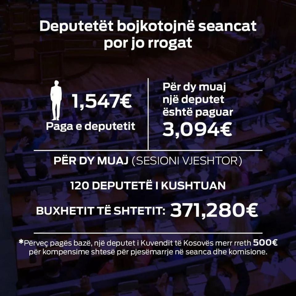 ”Prej fillimit të pandemisë deputetët e Kuvendit kanë marrë 2 milionë euro paga”, ka shkruar Ahmeti.