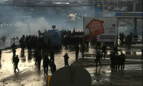 Thuhet se policia kohë pas kohe përdorë të ashtuquajturin biber sprej, kurse protestuesit iu kthejnë policëve me topa bore dhe gurë.