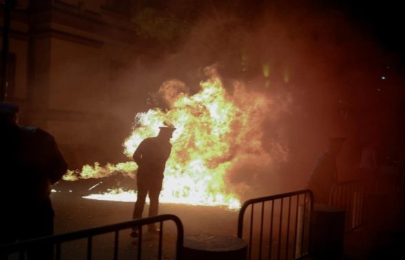 Policia arrestoi një 57-vjeçar për goditje dhe “shkatërrim të pronës me zjarr”, ndërsa po punon për kapjen e tetë personave të tjerë, mes të cilëve edhe një i mitur.