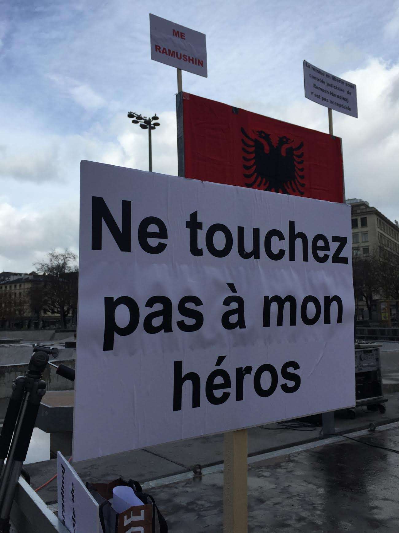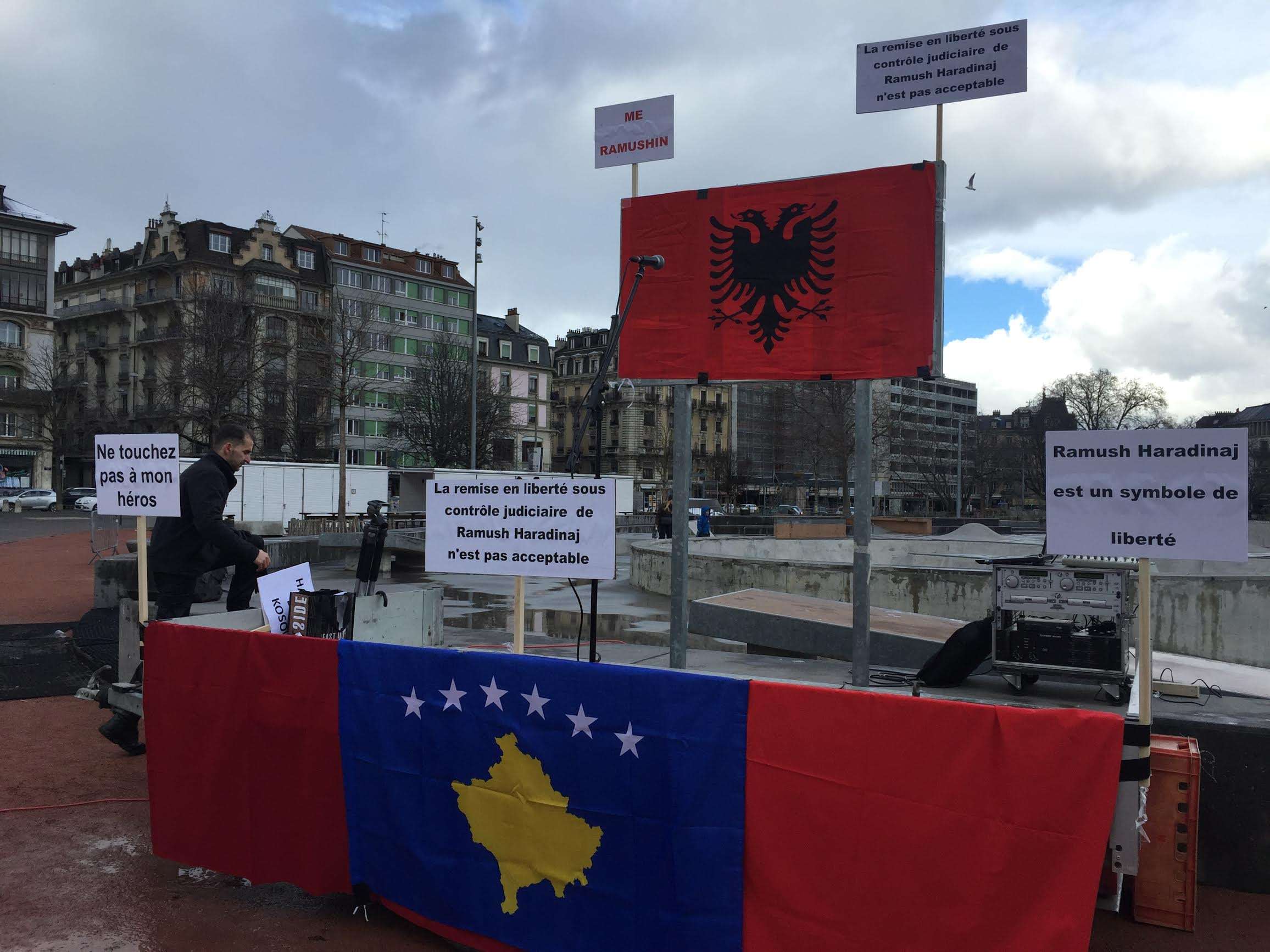 “Liri pa kushte për Ramush Haradinajn” është motoja e manifestimit që tani po mbahet në Plaine de Planpalais të Gjenevës ku qindra shqiptarë nga shtete të ndryshme evropiane jane bashkuar në mbrojtje te heroit të luftës, Ramush Haradinaj i cili po mbahet brenda territorit francez, pa lirinë e plotë të levizjes, nën akuzat e pabaza të shtetit serb.