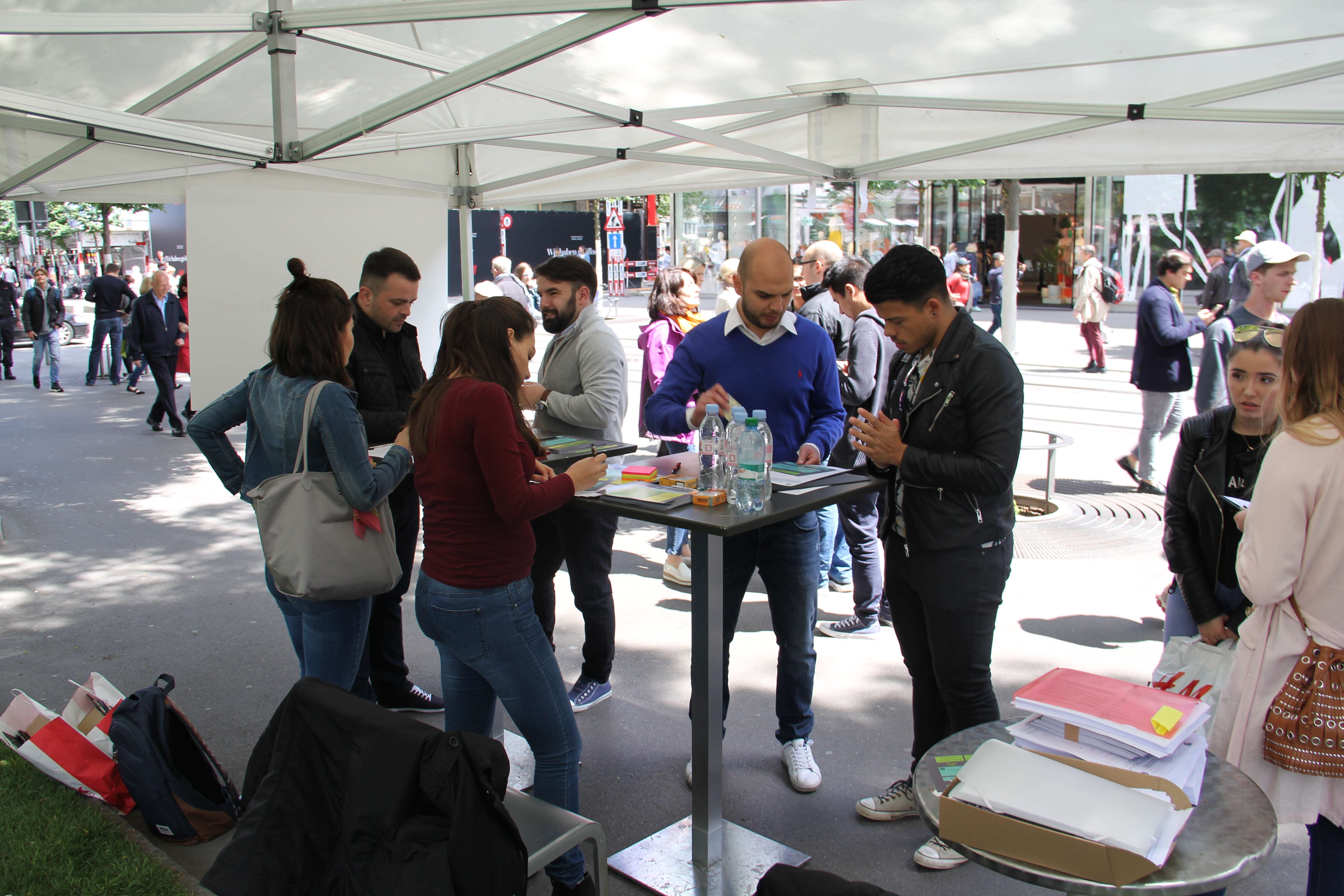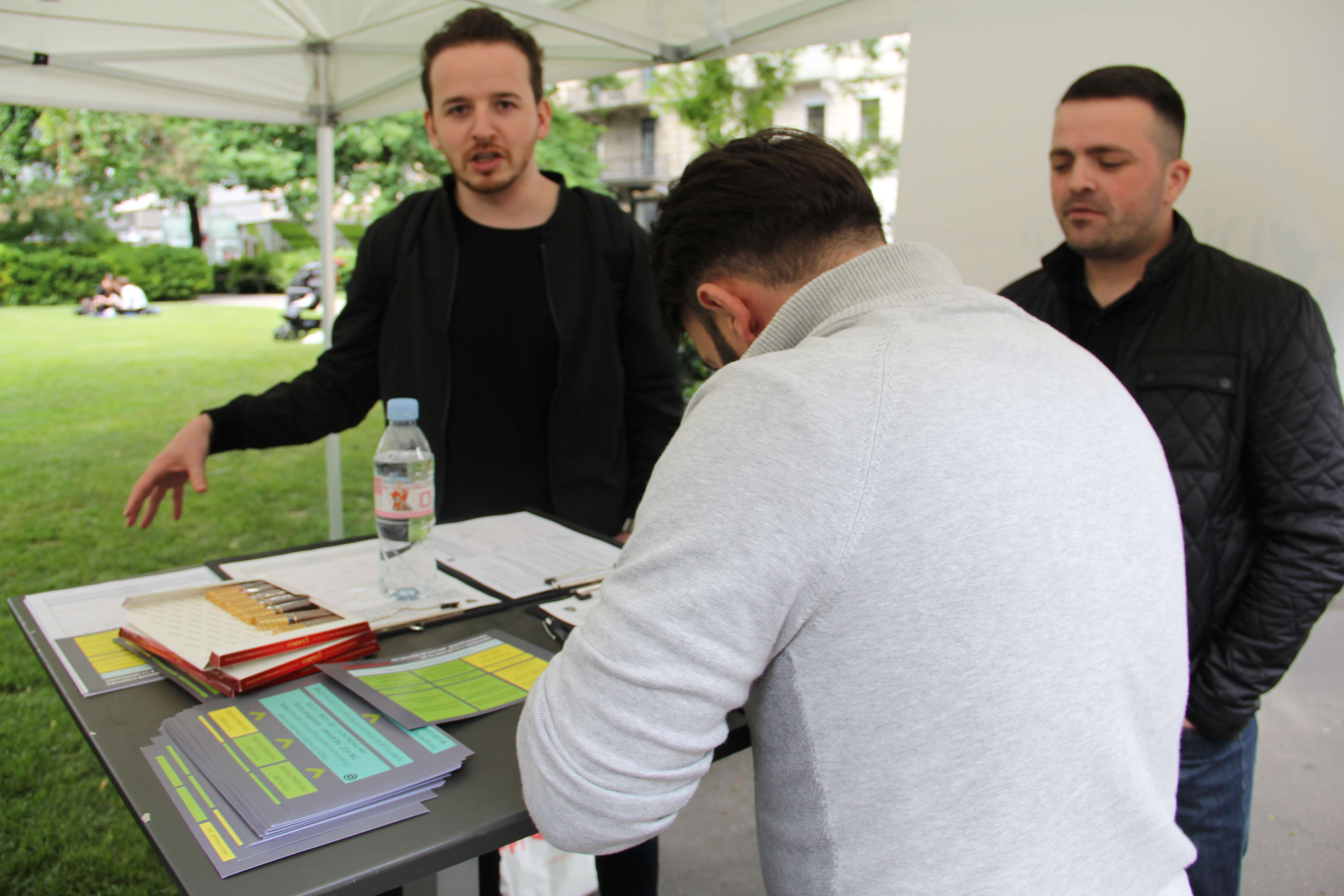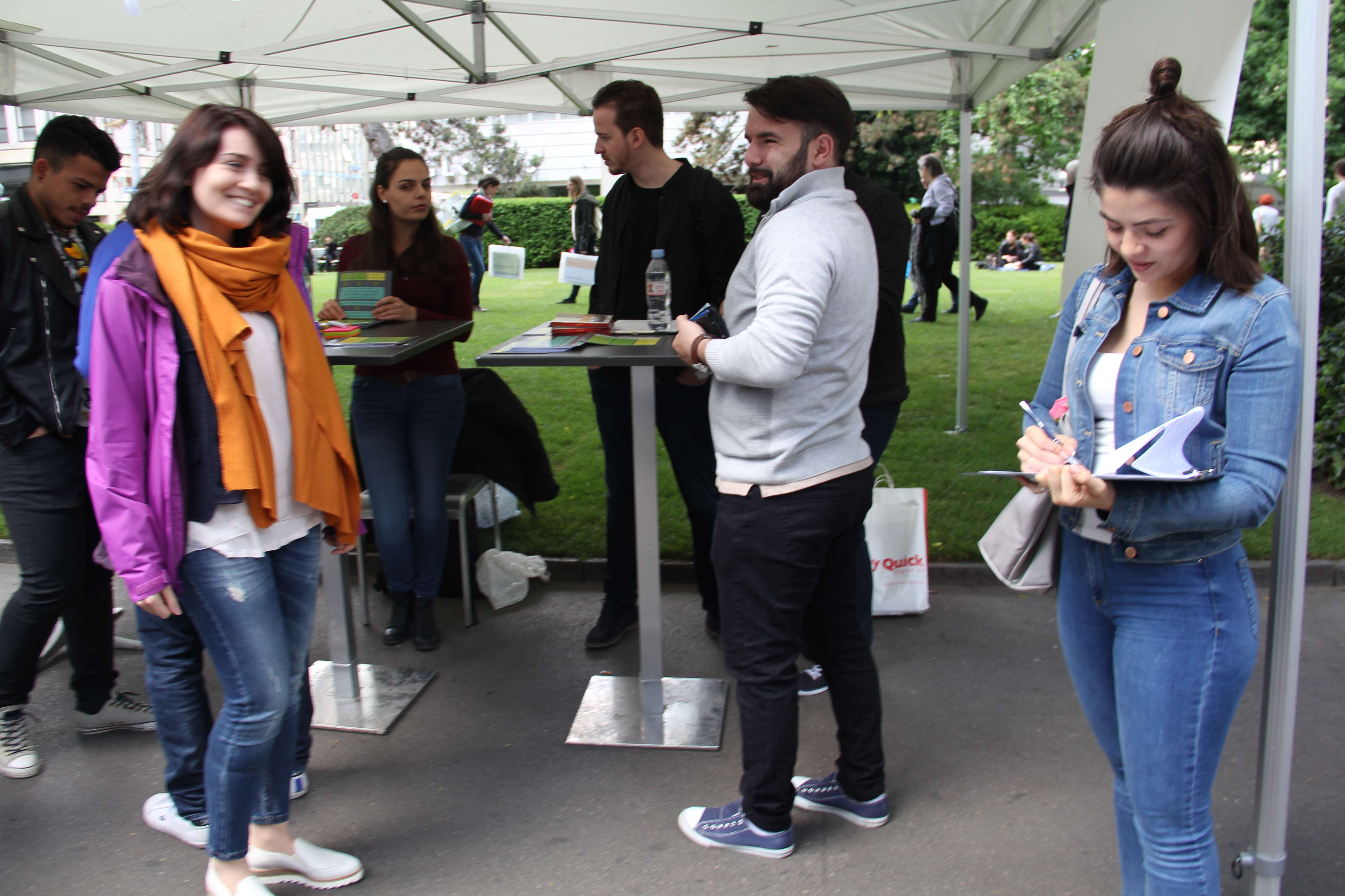 Gjatë qëndrimit në stendë, ndodhin edhe ngjarje interesante. Ja njëra prej tyre: “Një ushtar zviceran në orët e mëngjesit, kur sapo e kishim vendosur stendën erdhi e na pyeti se për çka bëhej fjalë. Pasi i treguam, ai iku. Por vetëm pak minuta më vonë vijnë dy ushtarë tjerë, kësaj radhe me prejardhje shqiptare dhe kërkojnë formularët për regjistrim. Kolegu i tyre, zvicerani që na kishte vizituar pak më parë, i kishte informuar ata per këtë mundësi”, tregojnë aktivistët.