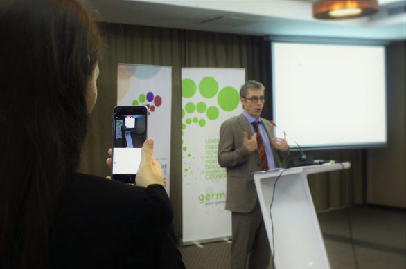 Behar Xharra, drejtor ekzekutiv i Germin, përmes lidhjes në skype nga Bangladeshi tregoi për qëllimin e iniciativës dhe rëndësinë e diasporës, që sipas tij është grupi social më i madh në Kosovë.