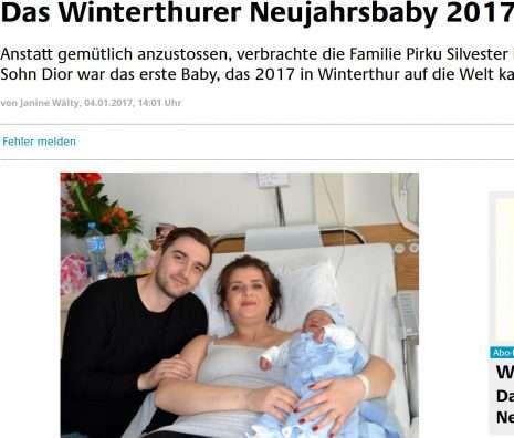 Të dielën, më 1 janar rreth orës 1 të pas mesnatës erdhi në jetë djali i Ardita dhe Shkelzen Pirkut, Diori në Spitalin Kantonal të Winterthurit. Ai është foshnja e parë në këtë qytet për vitin 2017.