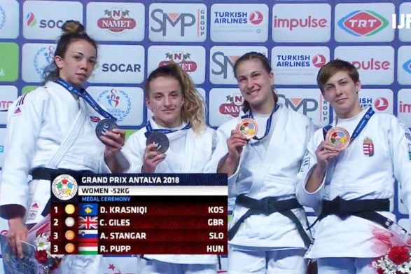 Xhudistet kosovare kanë shënuar sot në Turqi suksesin e radhës. Kështu, Distria Krasniqi, ka rrëmbyer Medaljen e Artë “Antalya Grand Prix 2018” në kategorinë 52 kg ndërsa Fjolla Kelmendi, të argjendtën, në kategorinë 48 kg.