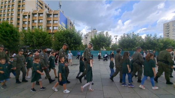 Në sheshin e kryeqytetit u organizua një paradë e Forcës së Sigurisë së Kosovës, të cilët u shoqëruan nga fëmijët.