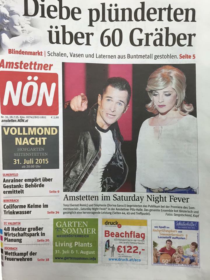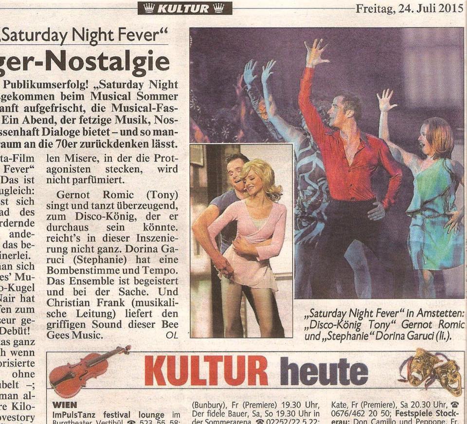 Pas prezantimit të suksesshëm në musical-in “In the Heights”, ku luajti rolin e Vanesës, këngëtarja shkodrane së fundmi ka interpretuar me sukses rolin e “Stefanisë” në musical-in e famshëm “Saturdays Night Fever”, e cila gjatë muajve korrik – gusht është shfaqur në Amstetten të Austrisë dhe është ndjekur nga 11 mijë shikues, raporton albinfo.ch.