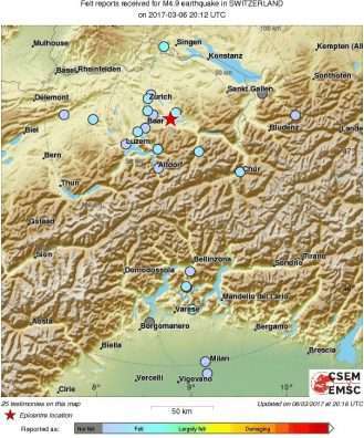 Lëkundjet janë ndjerë në tërë Zvicrën, sipas Shërbimit Sizmologjik të Zvicrës