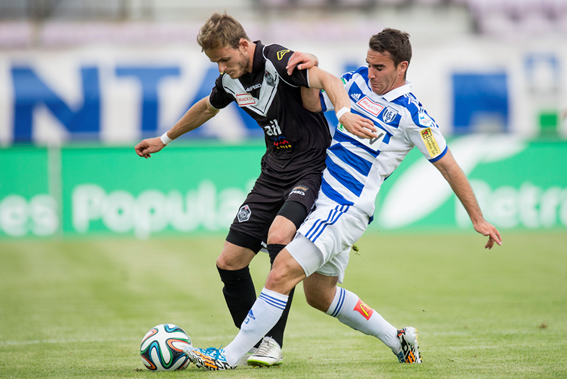 Drilon Paçarizi, i veshur me të zeza, në dyluftim me një mbrojtës të ekipit kundërshtar