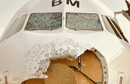 - Breshëri dëmtoi rëndë aeroplanin e „Austria Airlines” para aterimit në VjenëXhami i përparmë dhe "hunda" e aeroplanit u dëmtuan rëndë nga...