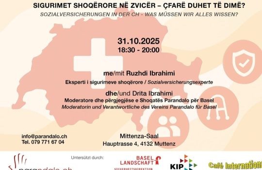 - “Sigurimet shoqërore në Zvicër – çfarë duhet të dimë?”Shoqata “Parandalo” fton të gjithë të interesuarit të marrin pjesë në...