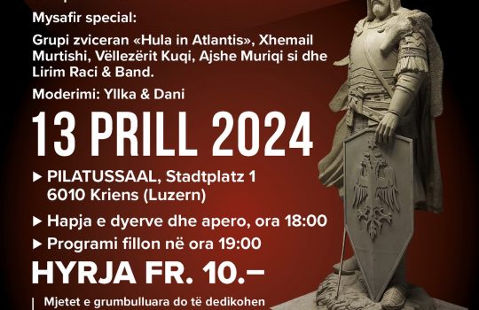- Koncert i madh me moton “Skënderbeu na bashkon”Më 13 prill, të shtunën, mbahet koncerti me nismën e shoqatës...