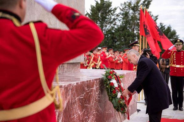 Presidenti Ilir Meta, Kryetari i Kuvendit Gramoz Ruçi, kryeministri Edi Rama, ministrja e Mbrojtjes Olta Xhaçka vendosen kurora në monumentin e “Nënës Shqipëri”.