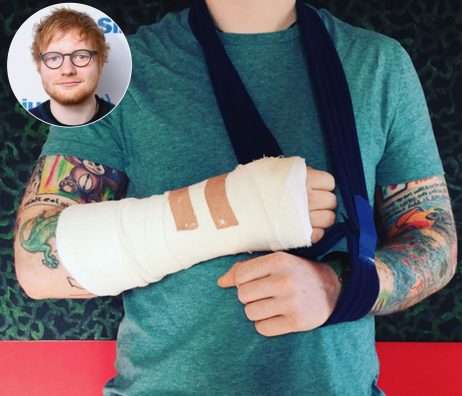 Ndërsa, BBC-ja ka raportuar se Sheeran e ka thyer krahun e djathtë. Lëndimi i tij mund të ndryshojë edhe datat e turneut të tij muzikor.