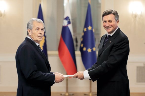 Ministria e Punëve të Jashtme njofton se ambasadori i Kosovës në Slloveni, Avni Kastrati, në një ceremoni zyrtare ia dorëzoi letrat kredenciale Presidentit të Sllovenisë, Borut Pahor, duke u akredituar si Ambasador i Jashtëzakonshëm dhe Fuqiplotë i Kosovës në Slloveni.