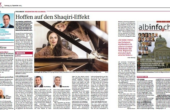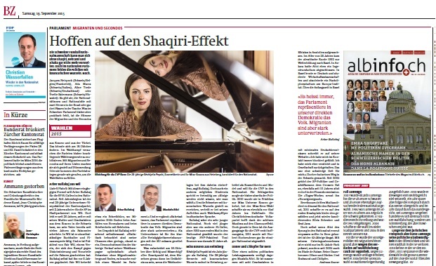 Në artikullin që po citojmë është vendosur si ilustrim ballina e revistës albinfo.ch në të cilën figurojnë kandidatët shqiptarozviceranë për zgjedhjet e sivjetme në nivele të ndryshme. Këto përpjekje të shqiptarëve për depërtim në jetën e këtushme politike, në ballinë simbolizohen me godinën e Parlamentit të Zvicrës dhe me portretet e kandidatëve përkatës.