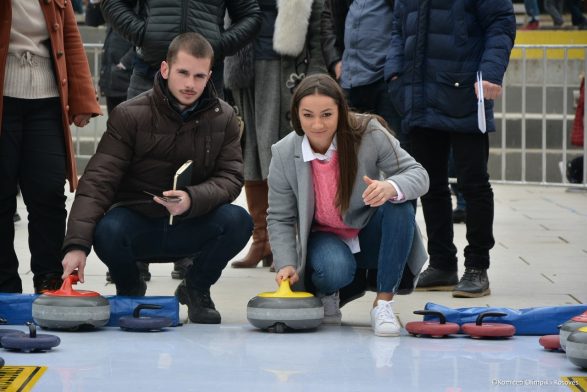 Mysafirët patën rastin të praktikojnë edhe sportin e kërlingut, i cili bashkë me patinazhin dhe hokejin po promovohen nga Komiteti Olimpik i Kosovës, përcjell albinfo.ch.